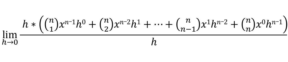 Now if you look at the numerator, the variable h exists in every term one or more times, this means we can factor out one h from every term in the numerator: