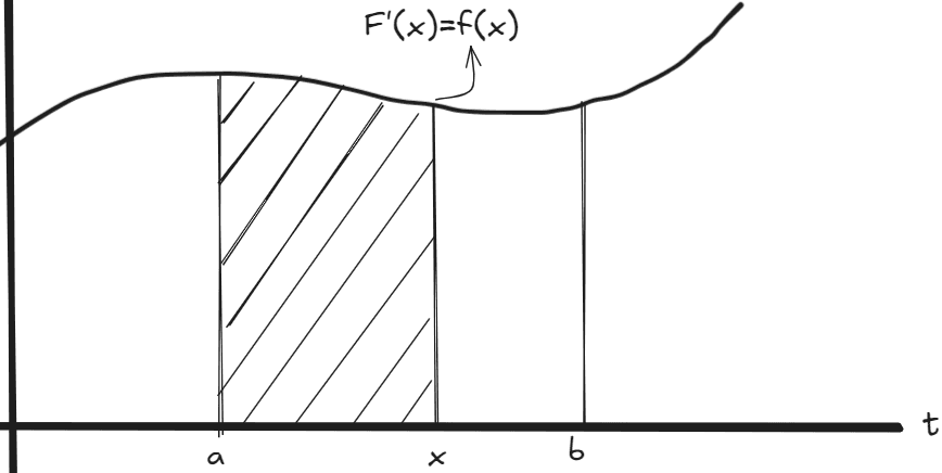 \(F'(x) = f(x)\) means a tiny increase of \(F(x)\) at \(x\) is equal to \(f(x)\). Also, the lower bound of the integral (\(a\)) has no affect on \(F'(x)\).