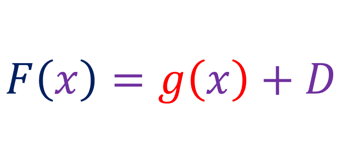 F(x) is like g(x), but where the arbitrary constant is unknown, so: