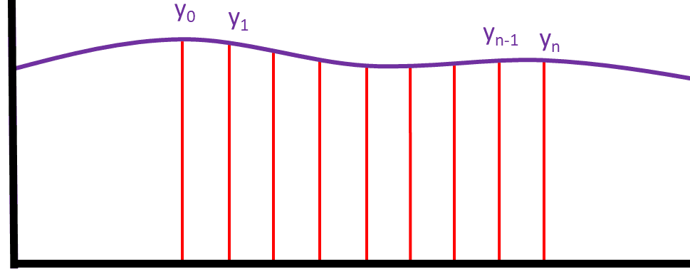 Next we label the value of y for each value of x; the first one should be called y0, and the last one should be call yn: