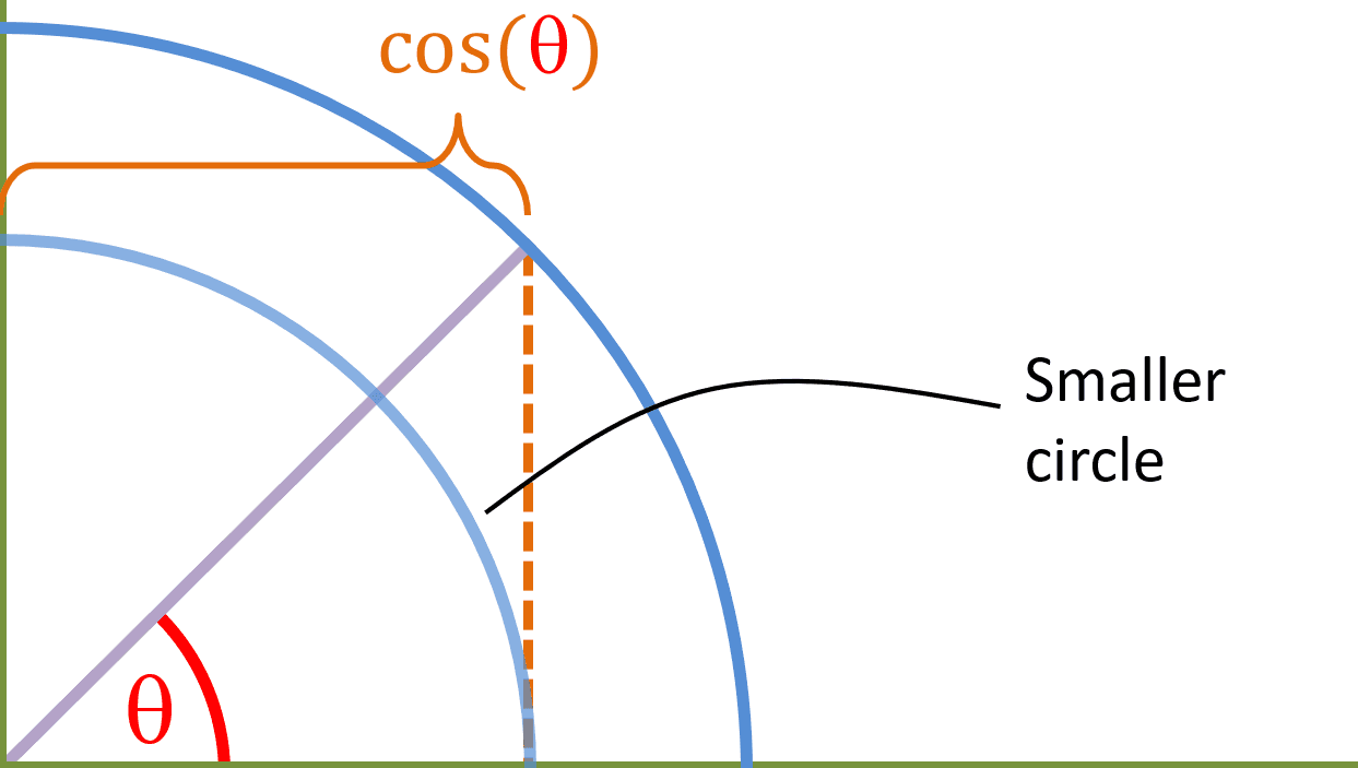 We know that A2 ≤ A1. Now lets create a smaller circle inside the main circle which has the radius of [cos(θ)]: