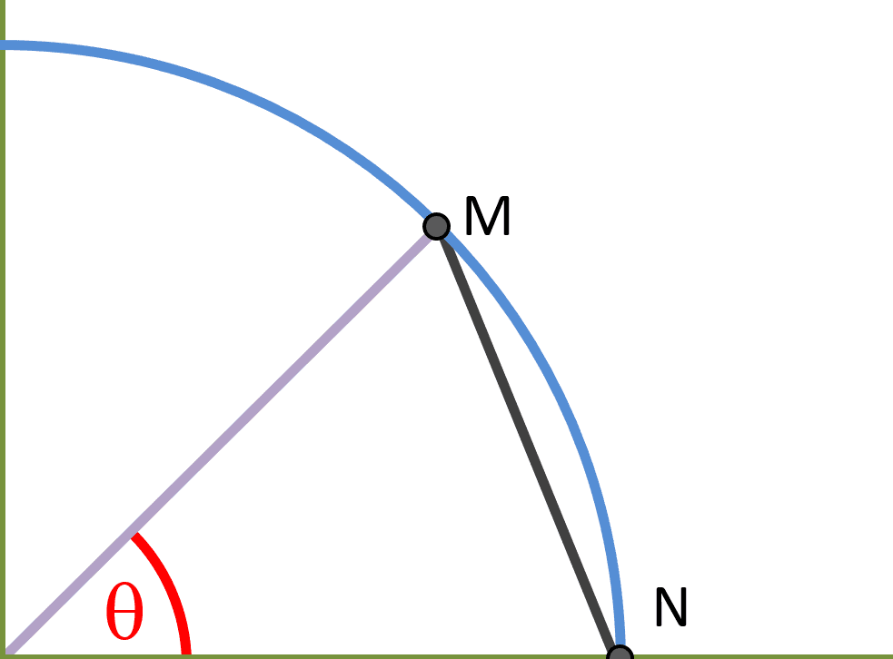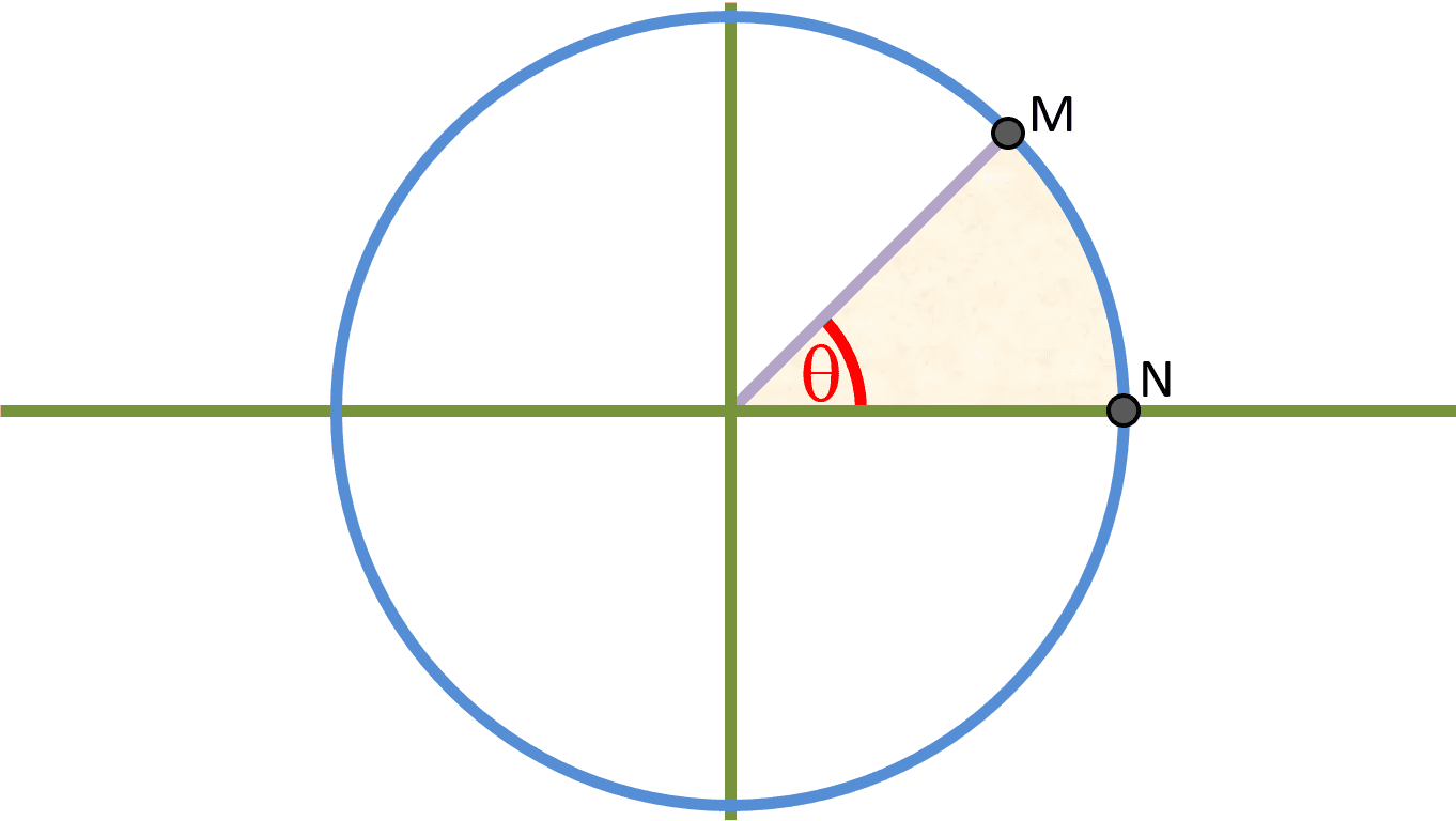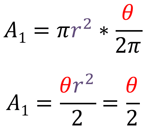 Let point M be the point where the purple line touches the circle and let point N be the point where the x-axis touches the circle. The formula for finding the area of a sector of a circle with raduis 1 is: