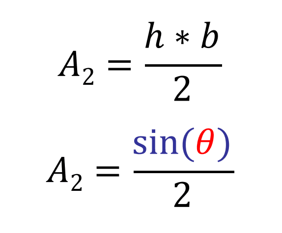 Since the height of this triangle is [sin(θ)] and the base is 1, then the area of the triangle is: