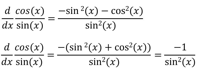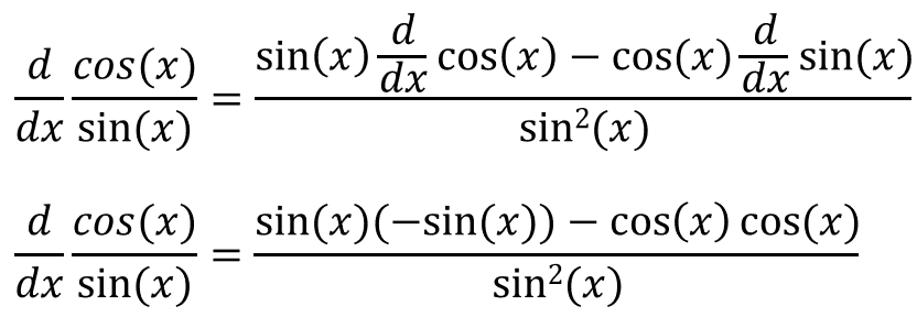 Finding the derivative of cotan(x) is the same as finding the derivative of cos(x)/sin(x):