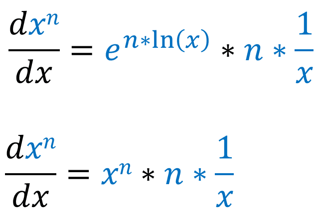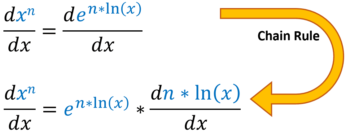 This proof requires chain rule and logarithmic derivatives. Lets start by rewriting xn in a different way: