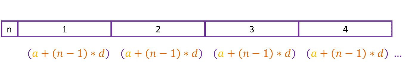 The first term is represented as a while the common difference is d. We can simplify it like this: