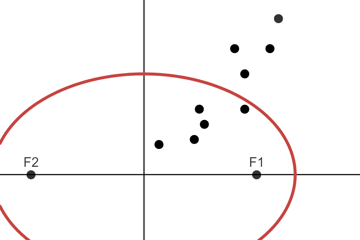This is our first claim. Now think about some random points inside and outside of the ellipse: