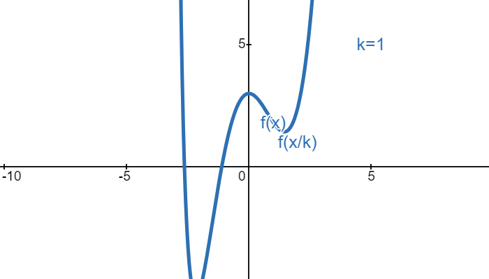If we want to stretch a shape in a graph by a factor of \(k\) on the \(x\)-axis, then we can achieve this by dividing the \(x\) variable by \(k\). For example, the function shown below is \(f(x)\). If we want to stretch it by a factor of \(k\) in the \(x\)-axis, we divide \(x\) by \(k\):