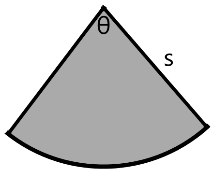 Let \(\theta\) be the central angle in radians, and let \(s\) be the radius of the sector. This means that \(s\) is also the slant height of the cone: