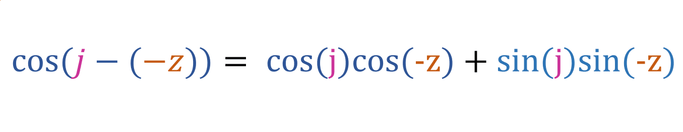 This is the subtraction formula for cosine, now lets replace k with -z: