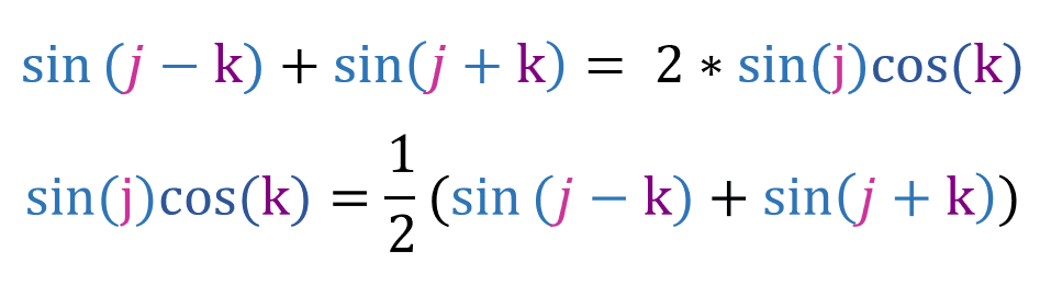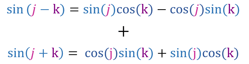 You must already know the addition formula and subtraction formulas for sine and cosine. Now suppose I do [sin(j + k) + sin(j - k)]: