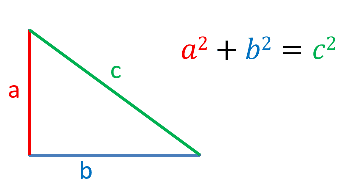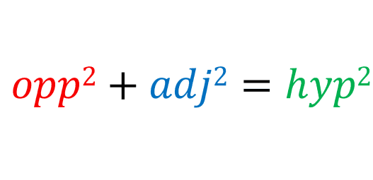 \[ \text{opp}^2 + \text{adj}^2 = \text{hyp}^2 \]