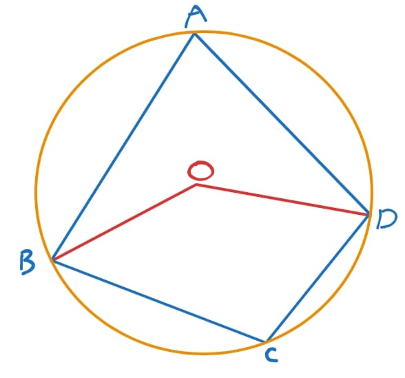 Consider the circle below with with the quadrilateral \(ABCD\) incribed inside: